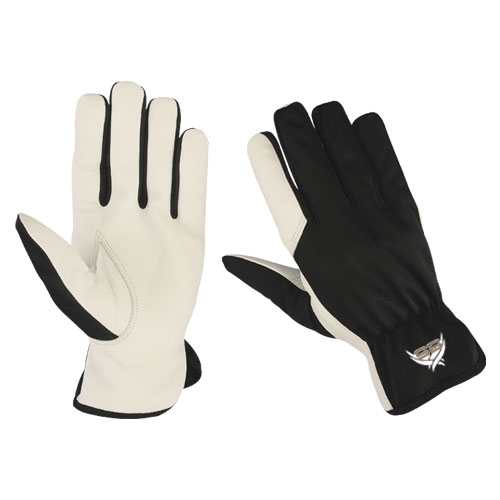 Goat skin gloves high quality reflector finger tips hivisible britex and shirred elastic on back Keystone thumb index finger black piping.