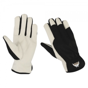 Safety Gloves plam goat skin leather back britex yellow color straight finger keystone thumb piping any color.