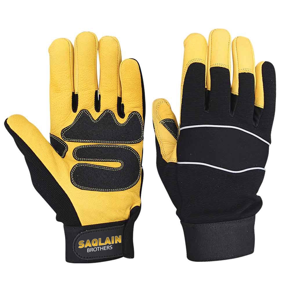 Yellow Goat Leather glove Palm Back Forway+Reflector Piping. Sizes Available.